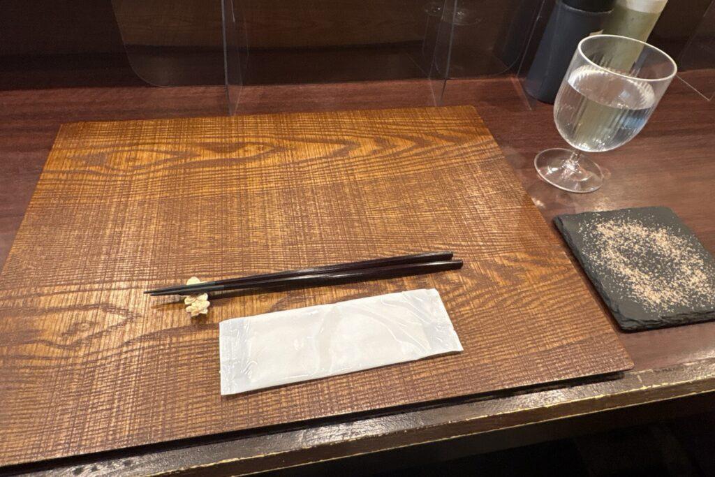 席に着くと、右側にとんかつ用の塩(ポルチーニソルト)が配膳されました。