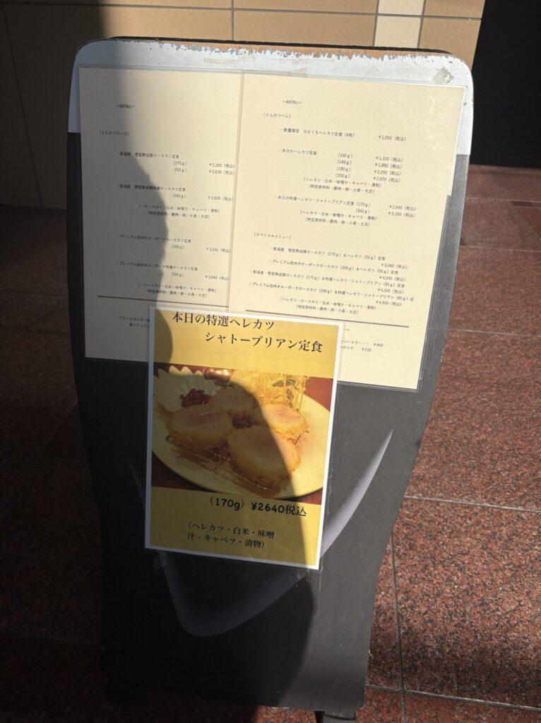 本日の特選ヘレカツ シャトーブリアン定食(2,640円)を頼みました!